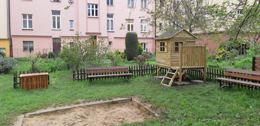 Mezi největší problémy Zahrady pod Rapidem, která je v péči obyvatel vnitrobloku Družstvo Pod Rapidem, je každoroční úbytek vody a boj se zavlažováním během horkých letních měsíců. Stejně tak bylo problémem motivovat mladé rodiny s dětmi k péči o zahradu. Díky podpoře MČ Praha 10 se nám podařilo docílit nákupu nové zahradní techniky (sekačka s akumulátorem), ale zejména nákup hadicových navíječů, nutných pro rozšíření závlahového systém do dalších částí zahrady. Pro starší obyvatele vnitrobloku představovalo těžké nošení konví s vodou značné fyzické potíže. V neposlední řadě jsme pro rodiny s dětmi pořídili zázemí pro ekovýchovu dětí – zahradní domeček a bednu na dětské zahradní náčiní, aby se učily pečovat o životní prostředí kolem sebe a vytvořily si pozitivní vztah k přírodě a k místu, kde žijí. Pořízené zahradní náčiní, nový závlahový systém jsou nyní k dispozici všem obyvatelům. Instalace zahr. domečku proběhne nyní na jaře – nákup proběhl na podzim, jelikož jsme čekali na výhodnější ceny ve slevách.