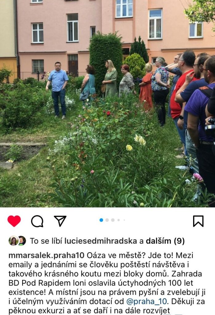 Dne 29.5. proběhla na zahradě návštěva z Ministerstva životního prostředí a MČ P10. Zajímali se o fungování zahrady a také se dívali, jak byly využity dotační peníze a dary (studna, hadicové navíječe, sekačka, domeček pro děti, kompostéry a další). Jsme rádi, že se o zahradu ministerstvo i MČ P10 zajímají a věříme, že za laskavého finančního přispění zvládneme její dlouhodobý udržitelný rozvoj.